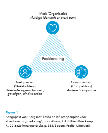 Een goede positionering is van belang om een bepaalde doelgroep aan te spreken, waardoor zij voor jouw organisatie kiezen. Het onderzoeksproject MOVES doet onderzoek naar de positionering van fysio- en oefentherapiepraktijken. Een goede positionering bestaat uit het optimaal afstemmen van de doelgroep, concurrenten en het merk (zie figuur 1) [2]. In mijn masterthesis heb ik onderzoek gedaan naar hoe fysiotherapiepraktijken hun merk bepalen.