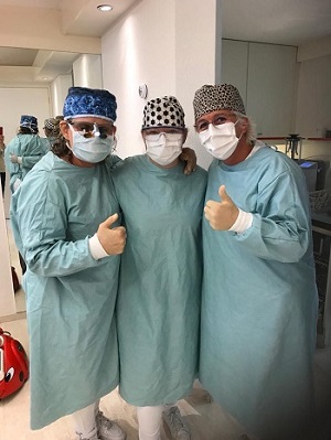 ‘Implanteren moest ik in twee gevallen ook. Je implanteert in operatiekleding en dat voelde ook heel prima. We zijn toen vanaf 21 april in operatiejassen gaan behandelen, alleen die waren niet meer te krijgen. Maar als je die jassen anderhalf uur op de hoogste stand droogt in de wasdroger, overleeft er geen virusdeeltje. Zo konden we per patiënt toch steeds schone jassen pakken. Mijn man maakte die in de wasservice weer schoon. We hebben zo redelijk goed doorgewerkt, hoewel we in juni nog een stukje achterstand moeten wegwerken.’