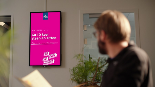 Per praktijk kan de informatie snel en makkelijk aangepast worden. ‘Ik kan zelfs op afstand, vanaf mijn eigen pc, de content op de verschillende schermen aanpassen. Het werkt snel en ik ben er niet veel tijd aan kwijt. Als het draait, hoef ik er niet meer naar om te kijken. Heel gebruiksvriendelijk dus.’