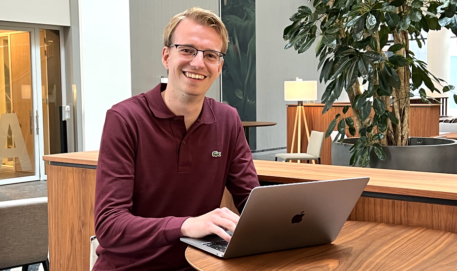 Patrick Vollenbroek (25) komen we tegen in zijn kantoor in Almere. Gevestigd in het WTC zit hij achter zijn laptop in een Teams-overleg met zijn programmeurs. Een dagelijks ritueel rond de klok van negen; hij zet de grote lijnen uit. Na een kwartier is hij klaar en heeft hij tijd voor ons. ‘Een uurtje toch?’ Het is duidelijk dat hij een volle agenda heeft. ‘Koffie?’ We lopen naar de lounge van het WTC waar we kennismaken met een ontspannen ondernemer.