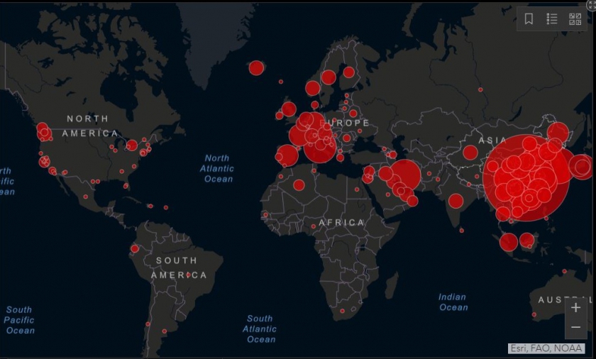 Beeld: Coronavirus COVID-19 Global Cases by Johns Hopkins CSSE