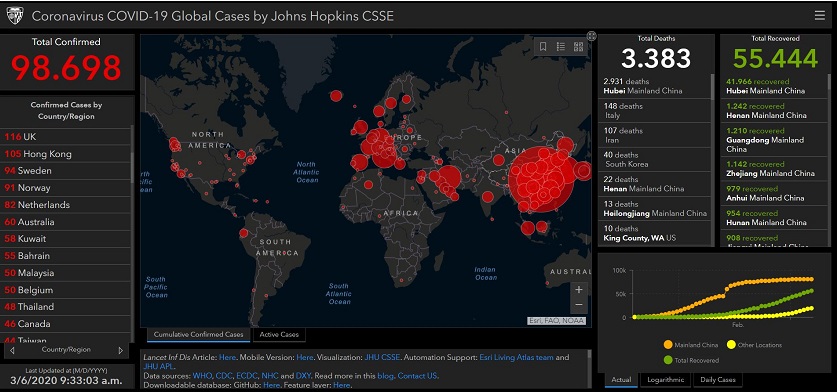 Link: Coronavirus COVID-19 Global Cases by Johns Hopkins CSSE