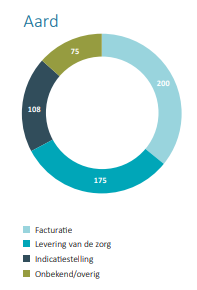 Het grootste aantal fraudesignalen in de zorg had betrekking op de facturatie, waarbij een zorgverlener een factuur inlevert, waarop bijvoorbeeld meer of duurdere zorg in rekening wordt gebracht dan is geleverd. Het gaat hierbij om 200 van de 558 signalen. In 175 gevallen waren er tekortkomingen in de levering van de zorg, waardoor patiënten of cliënten vermoedelijk minder of andere zorg kregen dan ze nodig hadden. 108 signalen gingen over de indicatiestelling, waarbij het vermoeden is dat met onjuiste gegevens een indicatie is verkregen voor meer of andere zorg dan de patiënt of cliënt eigenlijk nodig heeft. 75 signalen vallen onder onbekend of overig.