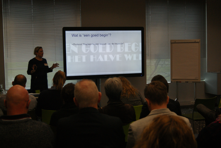 “Als iemand namens de Inspectiedienst belt, geloof je dat dan meteen?” vraagt senior adviseur gezondheidsrecht bij de KNMT Joan van der Ven aan haar publiek. Ze spreekt over iets dat iedere zorgverlener de oren doet spitsen. Een bezoekje van de Inspectie voor de Gezondheidszorg (IGZ). Van der Ven kan dan ook rekenen op een volle zaal. “Veel zorgverleners denken dat ze meteen na een inspectiebezoek met naam en toenaam in de krant staan. Ik wil ze graag meegeven dat dat erg meevalt.” Van der Ven vertelt dan ook hoe je je het beste voorbereidt op een inspectiebezoek en welke bevoegdheden een inspecteur eigenlijk heeft. “Welke speerpunten zijn van belang gedurende het jaar en hoe kun je de praktijkvoering er het best op inrichten. Ik geef een inkijkje hoe de Inspectie, door de bril van de patiënt, naar de zorg kijkt. Wellicht stel ik ze een beetje gerust.”
