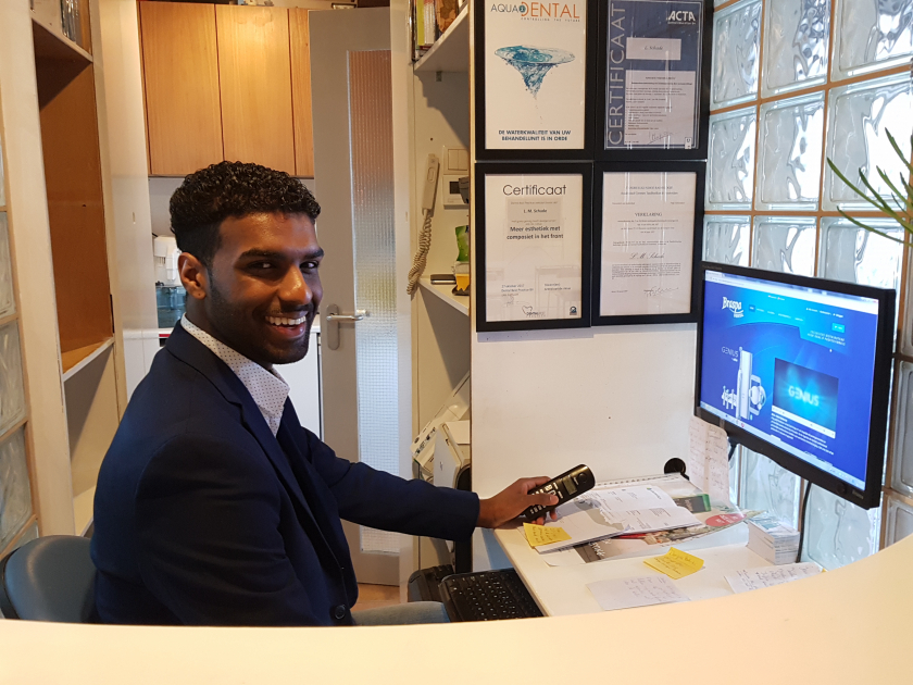 “Ik mag mezelf ingenieur noemen, maar ik heb nog zoveel te leren voor ik me helemaal in het bedrijfsleven stort. Daarom was ik op zoek naar een plaats waar ik aan mijn managementvaardigheden kon werken. Ik was niet gericht op zoek naar een baan binnen een tandartspraktijk. Maar op een avond postte ik om tien uur mijn oproep op Facebook en de volgende morgen om elf uur zat ik bij tandarts Leentje aan tafel voor het sollicitatiegesprek. Daar ging ik pas om drie uur weer weg, met een contract voor 28 uur op zak.”