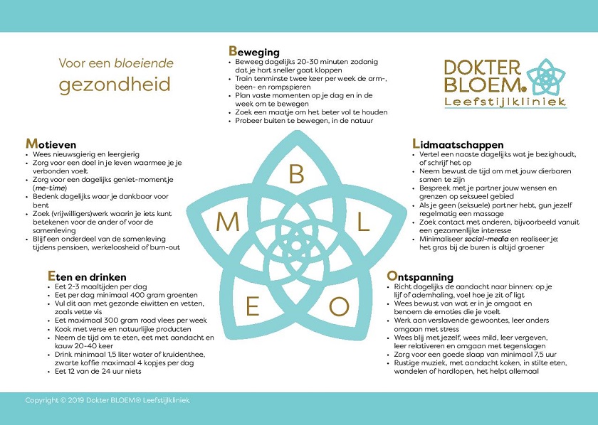 Dokter BLOEM® Leefstijlkliniek biedt leefstijlbegeleiding, en richt zich met name op: