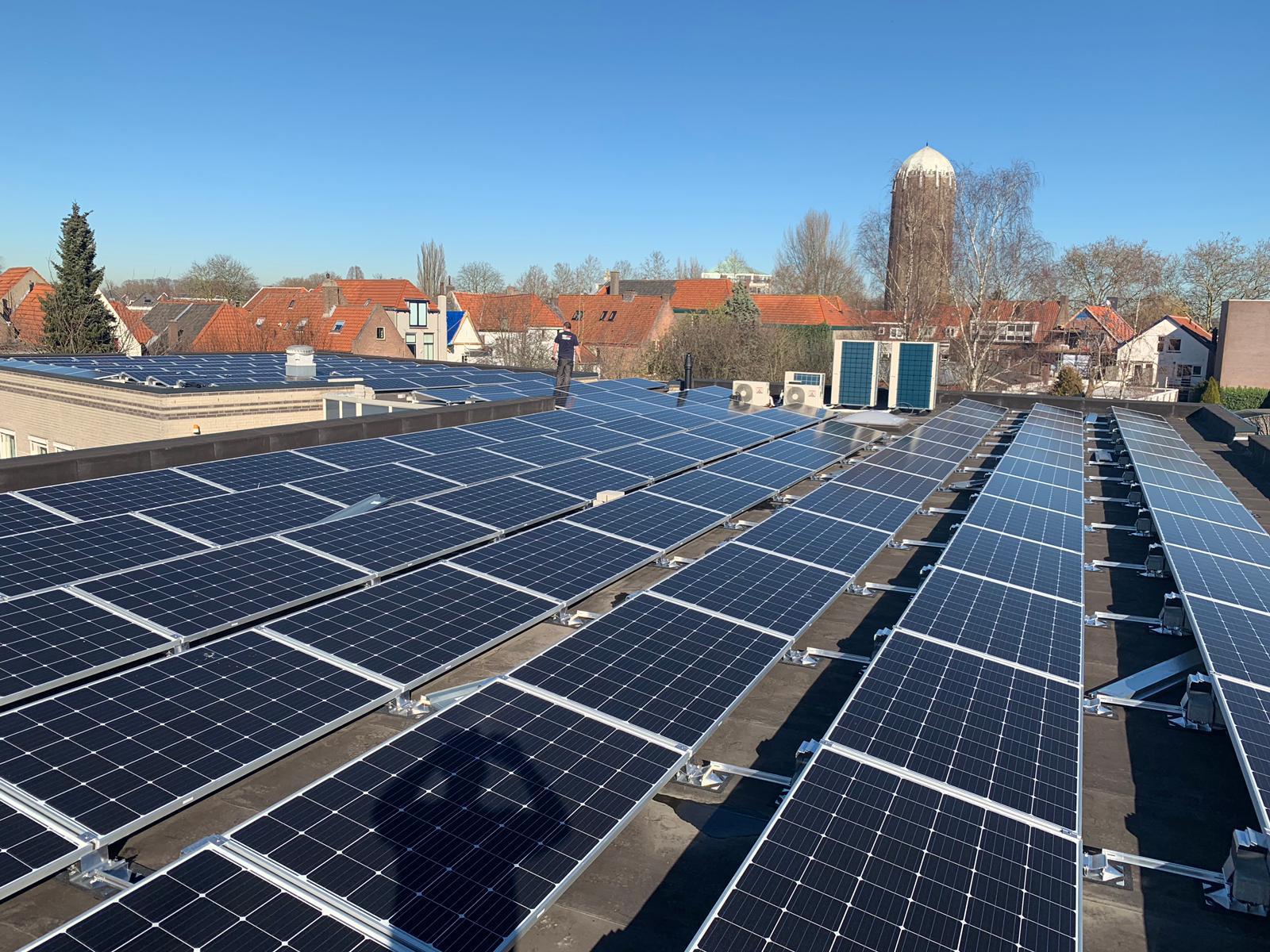De opzet van het mondzorgcentrum bood Bestebroer ook de kans om haar praktijk meer duurzaam te maken en te kijken of het pand van het gas af kon. De eerste stap was de aanleg van 155 zonnepanelen op het dak, vertelt ze met de nodige trots. ‘We produceren daarmee net zoveel elektriciteit als we met vier praktijken een jaar lang verbruiken. We zijn overdag aan het werk, terwijl de zonne-energie op het dak geproduceerd wordt. Sterilisatoren, autoklaven en airco’s gebruiken heel veel stroom en dat produceren we allemaal zelf. We gebruiken nog een beetje gas voor basisverwarming van het pand. Per partij hebben we geen elektriciteitsmeters, maar slaan de elektriciteit per vierkante meter om.’