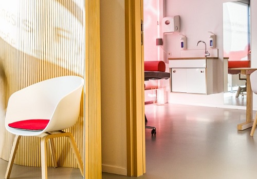 Kinesis Fysiotherapie hebben Koopman en haar partner zelf ingericht. Het pand werd casco opgeleverd en kon naar eigen wens worden ingedeeld. De oefenzaal is ingericht met fitnesstoestellen, gemaakt van duurzaam hout en met een doordacht ontwerp. Verder is gebruik gemaakt van natuurlijke kleuren met veel rode elementen. Rood is de huiskleur en dat komt dan ook duidelijk naar voren. ‘Ik word nog iedere dag blij van de inrichting’, aldus Koopman.