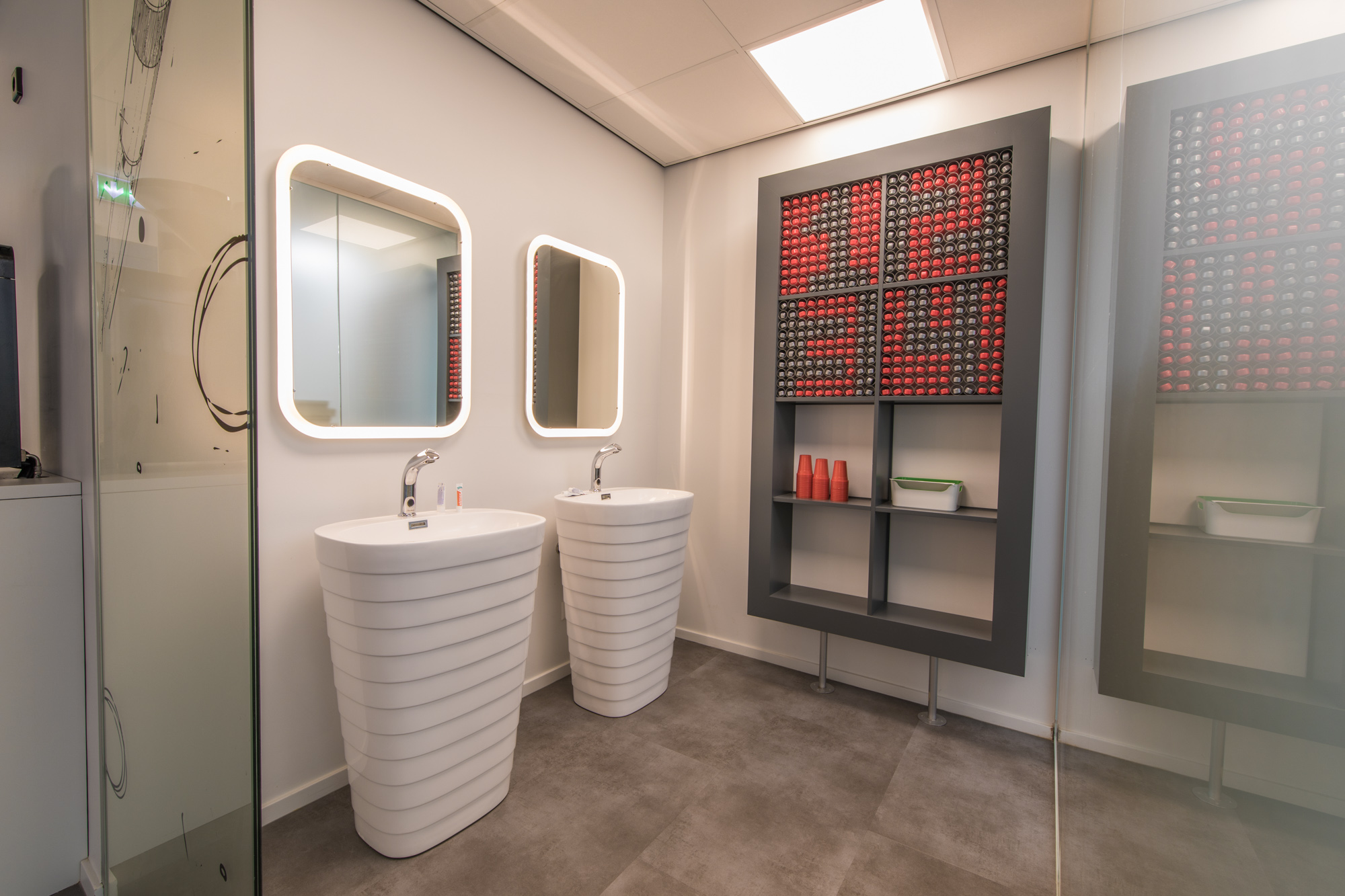 Stoker vertelt dat er ook een speciale poetshoek is ingericht, waar patiënten voor de behandeling hun tanden kunnen poetsen. ‘Dat is belangrijk. Volwassen denken hier wel aan, maar kinderen komen vaak vanuit school naar onze praktijk. Voor mensen die geen tijd hebben om thuis hun tanden te poetsen, hebben wij de hoek ingericht. Onze slogan bij Ortholuna is dan ook: “Blij met een stralende lach”.’