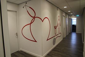 Meer ruimte gaf eindelijk de mogelijkheid tot uitbreiding van het team POH’s: een tweede POH-S en een POH-GGZ jeugd. Een team van 4 dat zich actief inzet voor kwaliteitsverbetering en innovatieve projecten. Door meer oppervlakte kwam er ook fysiek meer ruimte voor het opleiden. Aiossen, co-assistenten, doktersassistentes en onlangs een sportarts in opleiding hebben we begeleid in hun opleiding. Voor patiënten is de praktijk een grote vooruitgang, vooral op het gebied van privacy en hygiëne. Hoewel achter de gevel van de oude school een geheel nieuw centrum is gebouwd, is het karakter van de school behouden. Veel patiënten zaten hier op school en dit levert nog regelmatig leuke gesprekken op. Het gemak van alle hulpverleners onder een dak wordt door patiënten vaak genoemd."