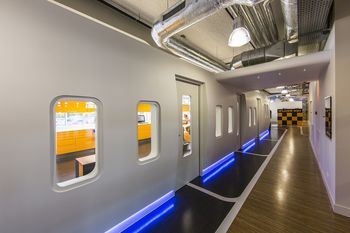 “We wilden iets bijzonders maken van de nieuwe locatie. Het moest voor kinderen een feestje zijn om naar de tandarts te gaan. De Waalsprong is een hele grote ruimte en wij vroegen ons af wat we konden doen. We zijn in overleg gegaan met ontwerpbureau Dentalair en hebben gevraagd of zij een vliegtuig konden bouwen. De behandelstoelen staan in de Boeing, de cockpit is de balie,” vertelt in den Bosch.