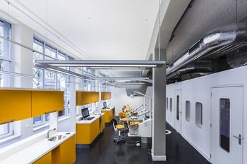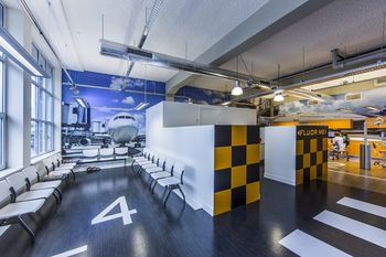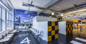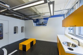“We hebben zelf ook ideeën aangedragen, zoals het fluoride hok. We hebben goed gekeken hoe het er op een vliegveld aan toe gaat. Er is een landingsbaan, hoe ziet een cockpit eruit? We hebben het zo realistisch mogelijk gemaakt. Het idee is doorgetrokken in de hele praktijk. Er is een grote glazen wand en daar hebben we vanwege de privacy een sticker van een kofferband op geplakt. We proberen het speels te houden. Sinds kort staat er een speeltoestel in de hal in de vorm van een vliegtuig,” aldus in den Bosch.