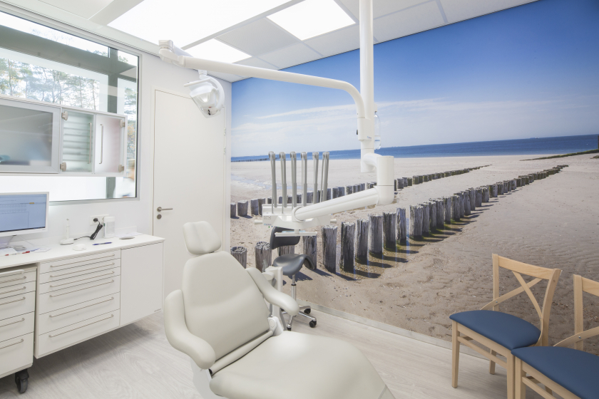 Naast de serene wachtkamer, bevatten ook de behandelkamers mooie vergezichten. Omdat Laura de behandelkamer zo leeg en rustig mogelijk wilde houden, is alles wat in de behandelkamer staat functioneel: “Functioneel en rustgevend, de stoelen in de behandelkamer zouden ook in een gezellig strandpaviljoen kunnen staan.”